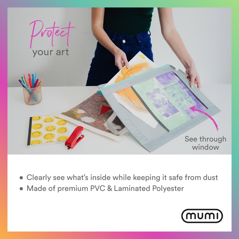 - BE MUMI, BE HAPPY – MUMI creates smart, stylish, and functional organizers for home, school, and office use. Whether you need a portfolio folder for artwork, a school paper organizer, or a scrapbook storage bag, this versatile project case helps keep your space organized and clutter-free.