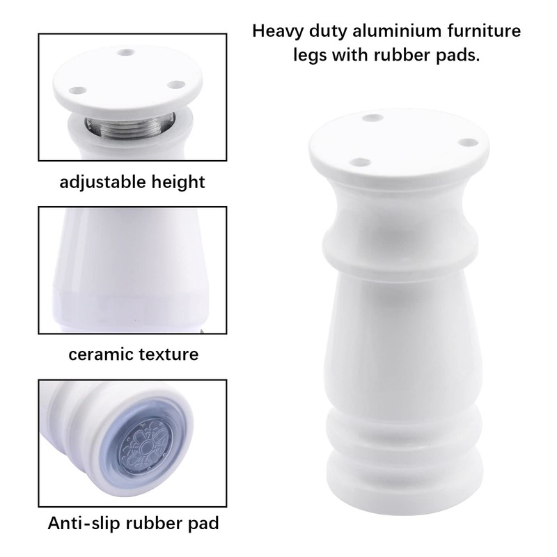 - Easy to Install: Aluminum Alloy Furniture Legs and 12 Screws With 3/5" Screws 3, Bottoms Installed With Transparent Rubber Pads for Non-Slip and Reduced Noise.
