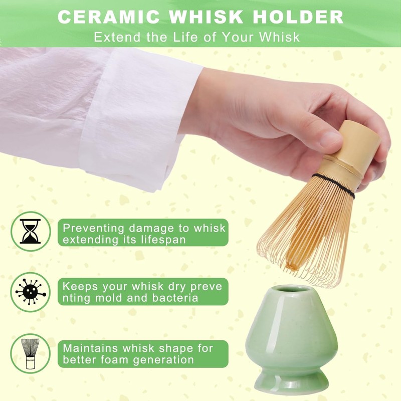 • EASY TO USE AND CLEAN: With its ergonomic handle and compact size, our whisk is easy to hold and maneuver, while the ceramic holder and tea scoop make for convenient storage and use. And when you're done, simply rinse the whisk and wipe it dry for easy cleaning.