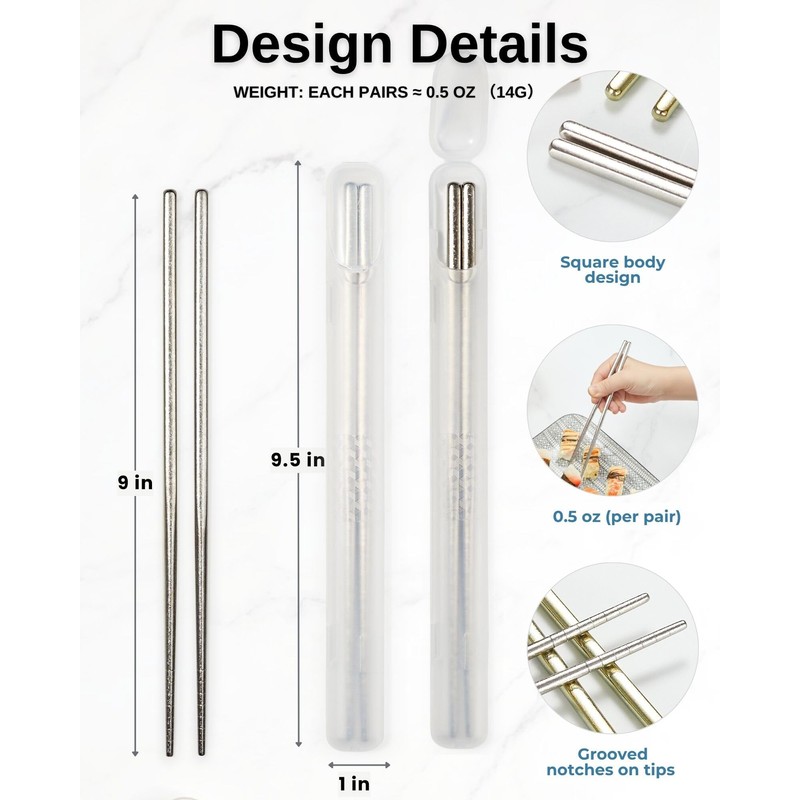 - Lightweight & Non-Slip – Only 0.5 oz and 9" long, with textured tips for a secure grip on food. Easy for beginners and perfect for travel, office lunches, or camping.