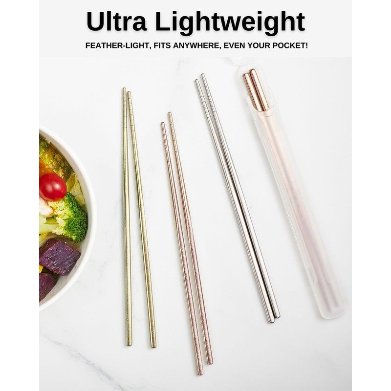 - Titanium Chopsticks – Crafted from food-grade titanium, these reusable chopsticks are strong, rust-proof, and built to last. A sleek, modern look that elevates every meal.