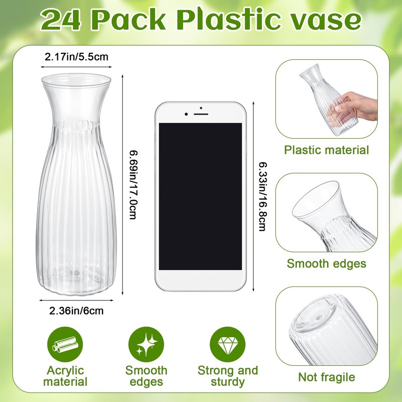 - Shatterproof and Safe: the shatterproof plastic vases for flowers are built to last and resist shattering, so you can use them without additional stress or worry; The shatterproof feature makes them reusable for a long time, lightweight and smooth