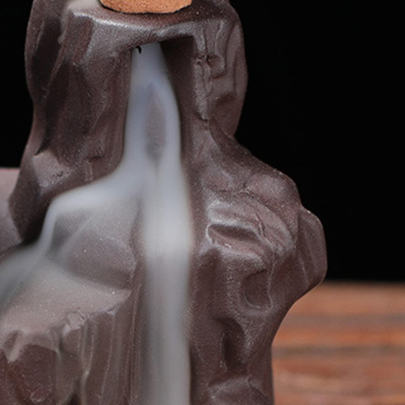- 2 usos: el quemador de incienso de reflujo se puede utilizar con conos o varillas de incienso. La parte superior se puede colocar con incienso de reflujo y el lado derecho se puede colocar con incienso de hilo. El humo es como una cascada.