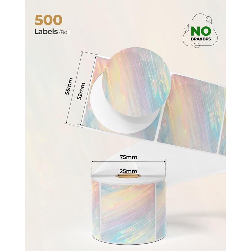 - Multicolor Shell Texture Design: The layered colors inject a unique visual into the gorgeous shell texture thermal label. Enhance your labeling experience with the 2-inch white round shell texture thermal print labels