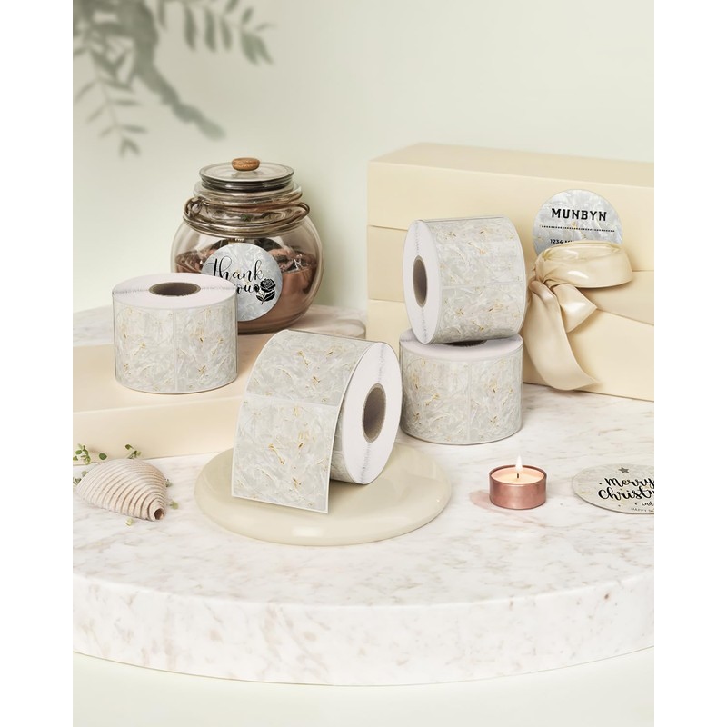 • White Texture Thermal Label: Munbyn thermal labels make your packaging more outstanding. Different angles show the shine of the shell texture. Enhance your labeling experience with the 2-inch white round shell texture thermal print labels