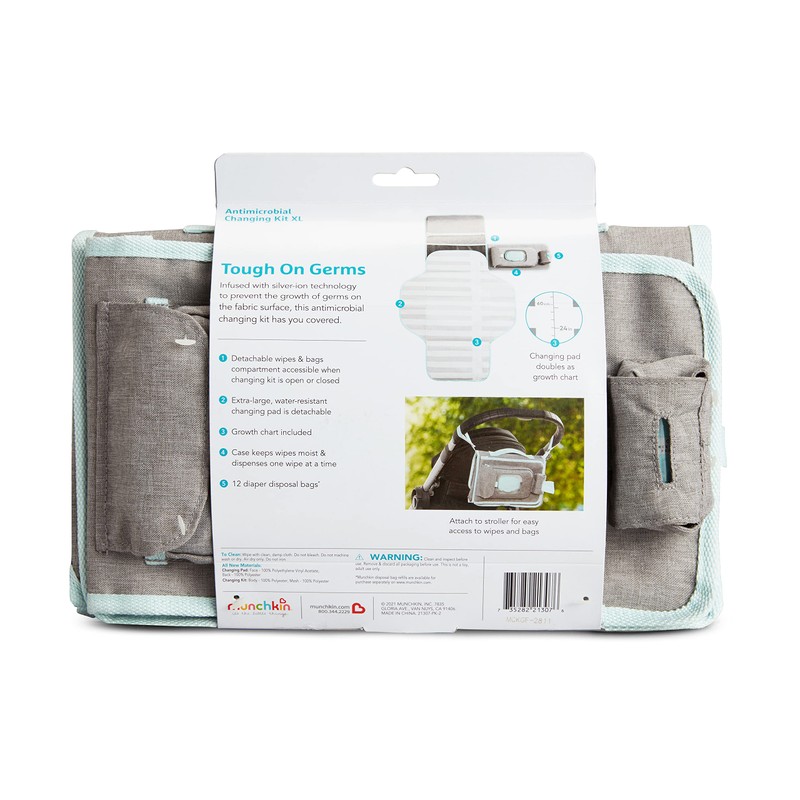 Munchkin Portable Changing Pad – Lightweight and Compact Baby Diaper Changing Mat with Silver-Ion Technology, Includes 12 Diaper Disposal Bags, Grey