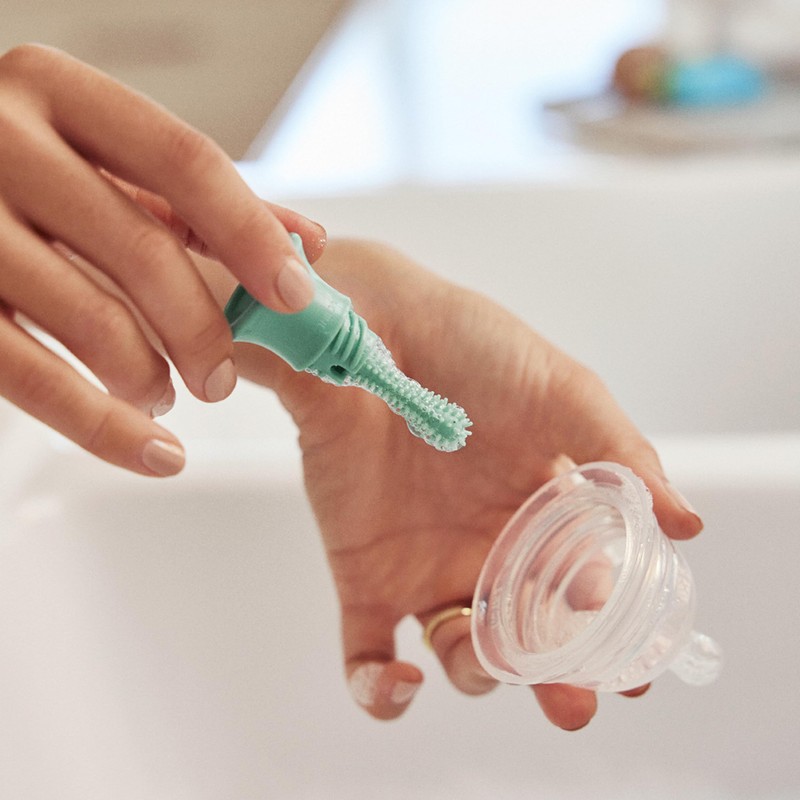 • Soft rubber nipple brush is gentle on small parts