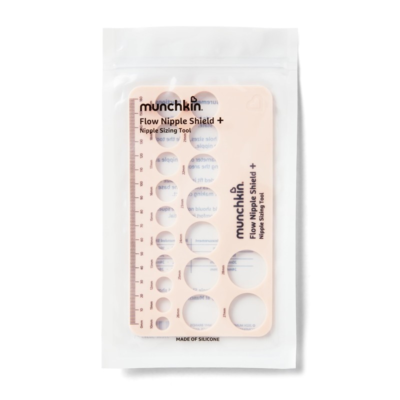 - This double-sided tool features clearly marked measurements along with a chart that correlates to Munchkin’s Flow Nipple Shield + sizes.