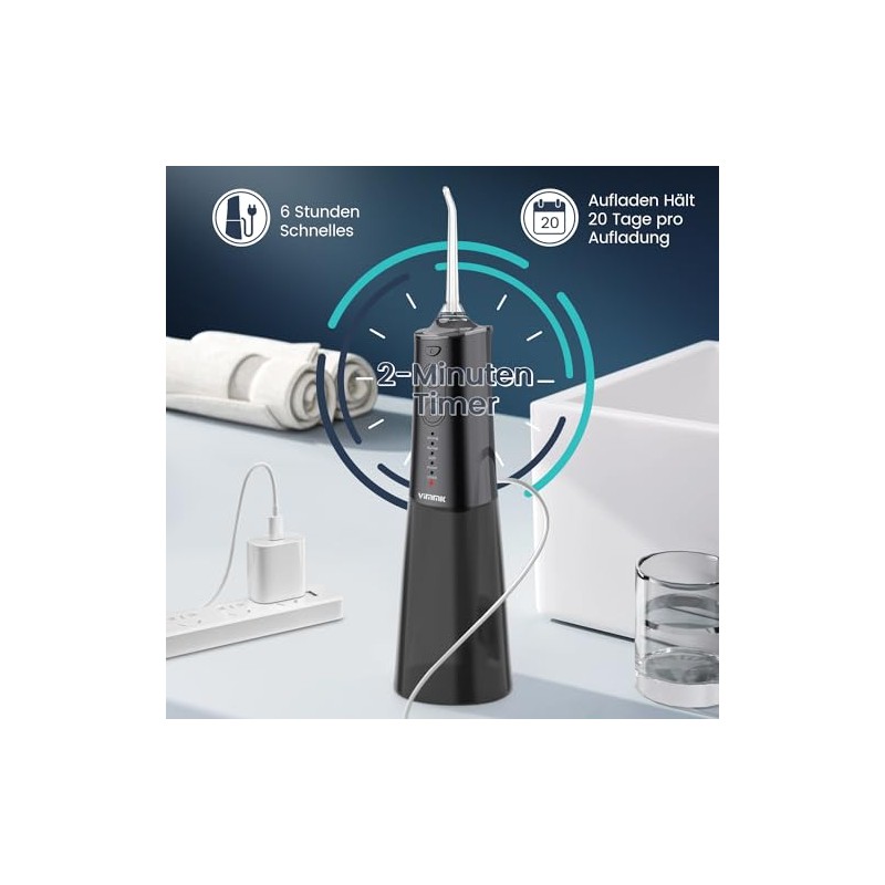• üíô„ÄêLeistungsstarker Akku & USB-C Wiederaufladbare„ÄëMit einem leistungsstarken, umweltfreundlichen 1500-mAh-Akku dauert das vollst√§ndige Aufladen, der Wasser Flosser 4-6 Stunden und die Dauernutzung dauert etwa 21 Tage. Ausgestattet mit einem USB-Typ-C-Kabel, geeignet f√ºr eine Vielzahl von Ladeger√§ten wie Powerbanks, Computer, Laptops und mehr. Das kabellose Design erleichtert die Verwendung und Aufbewahrung, egal ob auf Gesch√§ftsreise, im t√§glichen Gebrauch zu Hause oder als Geschenk.