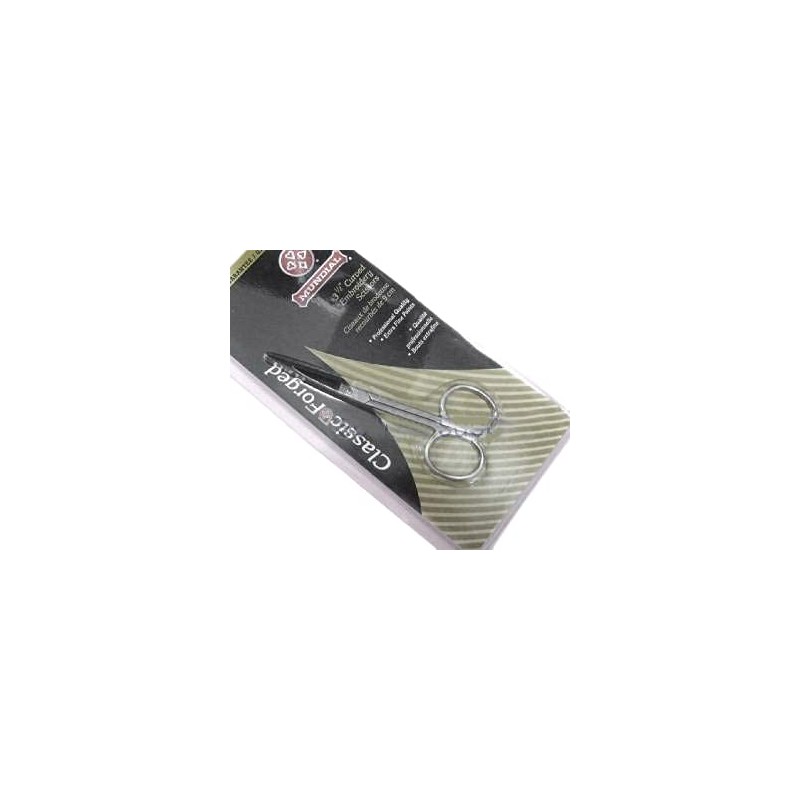 MUNDIAL 3-1/2" Classic Forged Extra Fine Points Curved Embroidery Scissors. When you're serious about your sewing and crafting, you should be serious about your cutting, too. Mundial Classic Forged scissors and shears begin with fine carbon steel, which is hot forged, tempered, plated, ground, honed, polished, adjusted, tested and inspected by cutlery artisans to meet exacting quality standards. The result is scissors and shears of uncompromising quality that will bring you years of cutting pleasure. Full Length : 3-1/2" (89mm) Cut Length : 7/8" (22mm) Finely tapered curved short blades with extra sharp points. Ideal for intricate work. Hot drop forged, fully chrome plated. Adjustable screw pivot assembly. Mundial Carries the finest quality fully plated carbon steel shears. The Classic Forged line is Mundial's most complete assortment of scissors and shears, ranging from the traditional dressmaker to very specially developed sewing and craft scissors. All Classic Forged scissors and shears are hot drop forged and fully plated for a lifetime of sewing satisfaction.