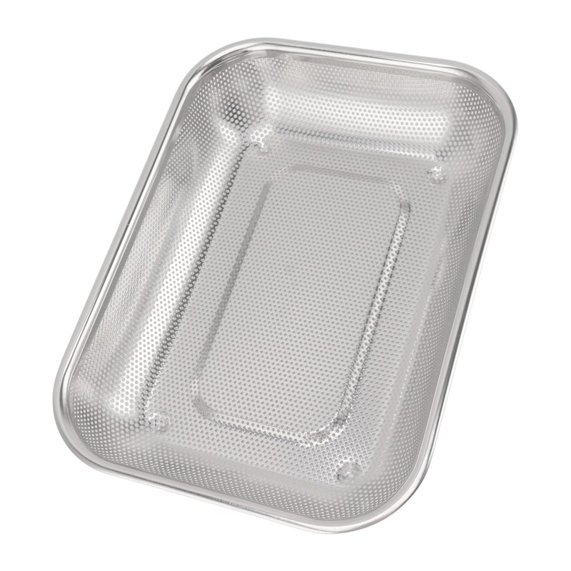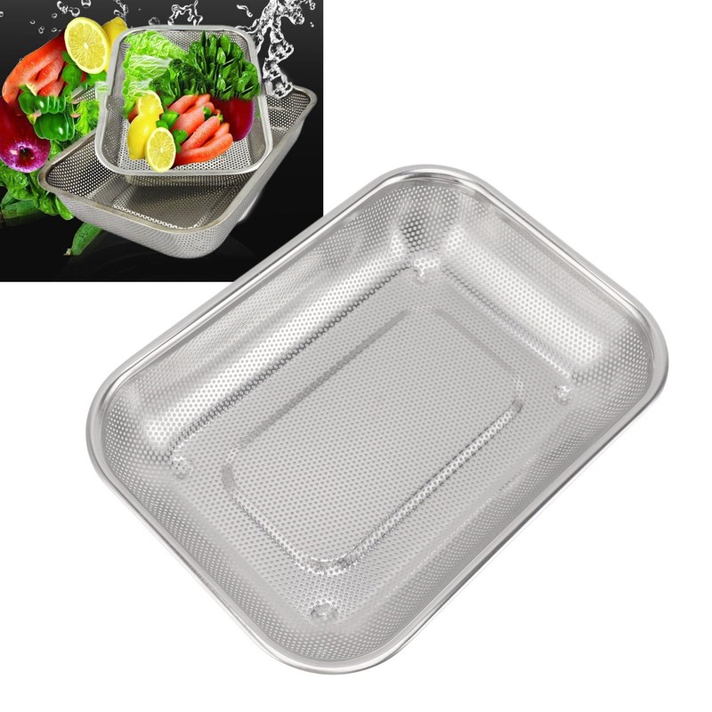 - VERSATILE TOOL FOR MULTIPLE TASKS: This rectangular mesh sink basket is highly versatile, serving multiple functions in your kitchen. It’s for washing vegetables, fruits, or rice, but can also be used to strain oil, pasta, or other liquids. This makes it an essential tool for all your food preparation needs.