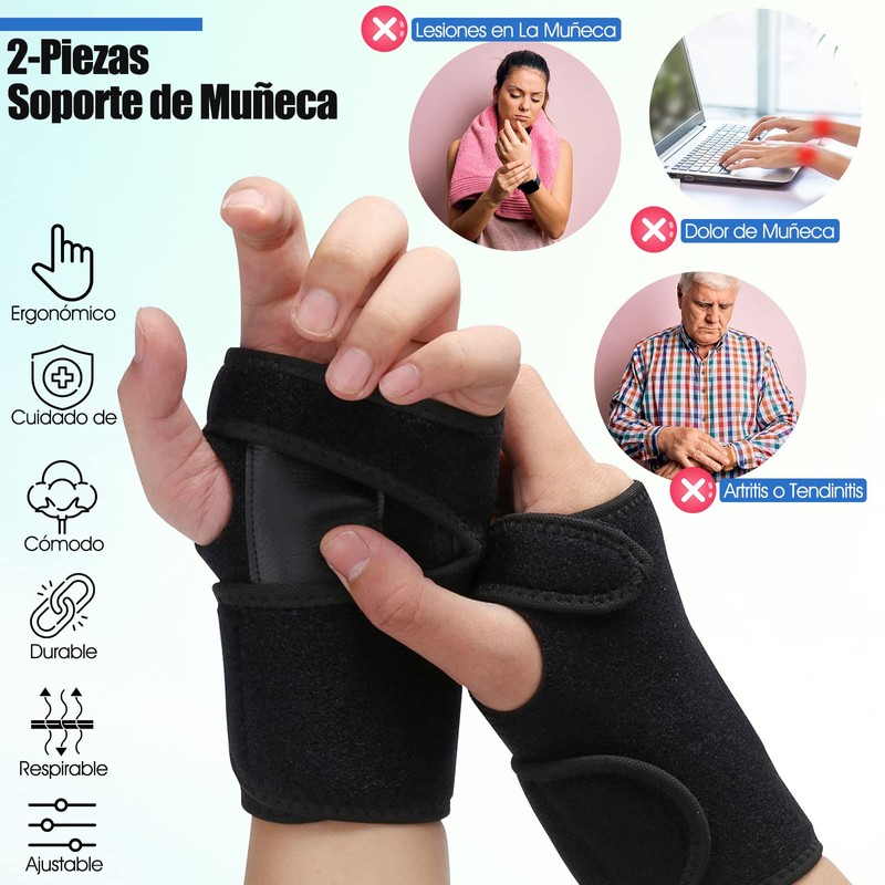 Muñequera Deportiva, Paquete de 2 Muñequeras con Férula Extraíble, Soporte de Artritis de Mano de Neopreno Transpirable Ajustable para Gimnasio, Un Par (Negro)