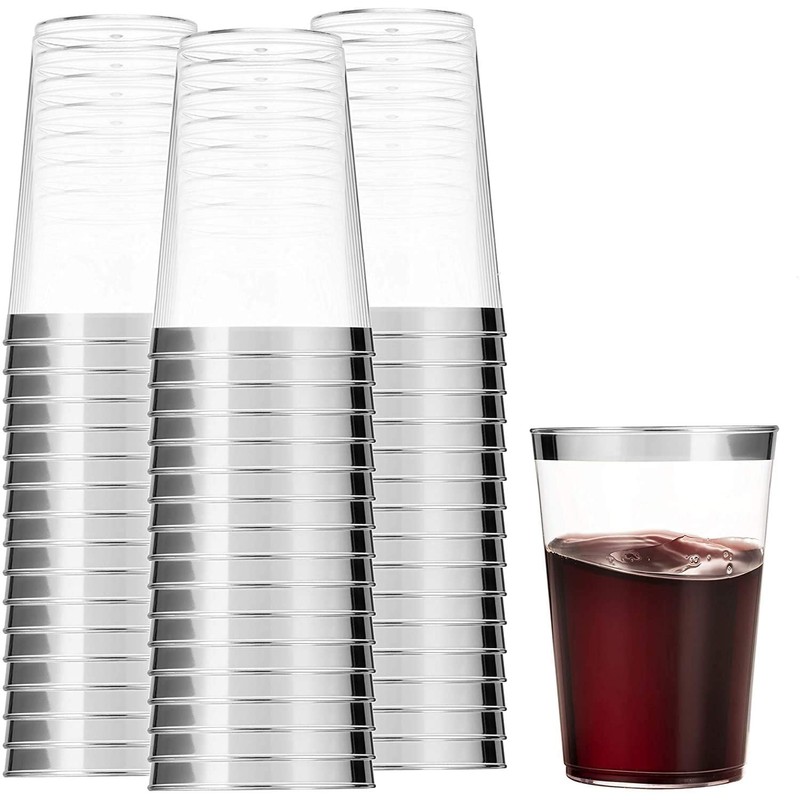The MUNFIX silver cups are Elegant and practical, Clear Silver Trimmed Premium Plastic Disposable Cups a must-have for the frequent party hostess! With metallic silver around the rim, use it for wine cups, champagne cups, punch cups, or water cups. ideal for weddings, sophisticated events and New Year's Eve parties.