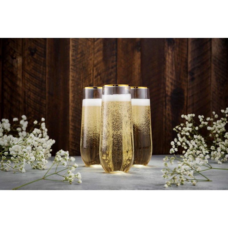 - Add elegant to your party with the Munfix Stemless Gold Rim Plastic Champagne Glass Flute