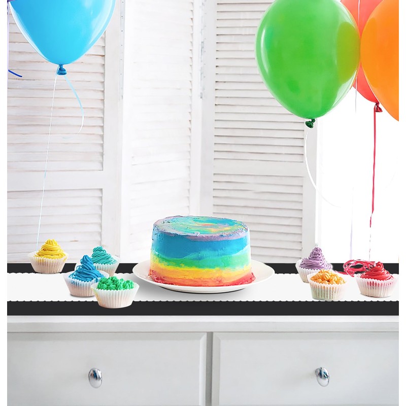 - Plastic table runner: The table runner for party is designed with black scalloped, which is simple but advanced, and it is deeply loved by many people. Using black table runner at your party will add beautiful colors to your party