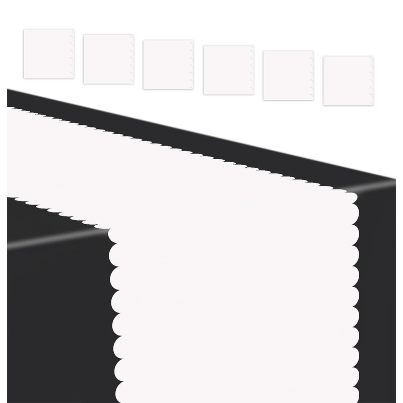 - White table runner: You will get 6 x plastic table runner, and enough quantity to meet daily party needs. The scalloped table runner can be used as table centerpiece decoration, will make the table more unique and design