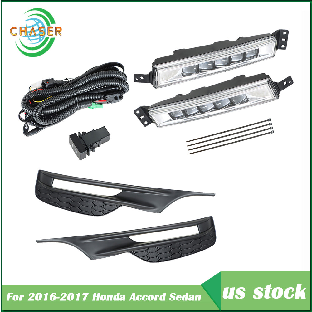 LH & RH Fog Lights Kit With Bezel Switch Wires For 2016-2017 Honda Accord Sedan