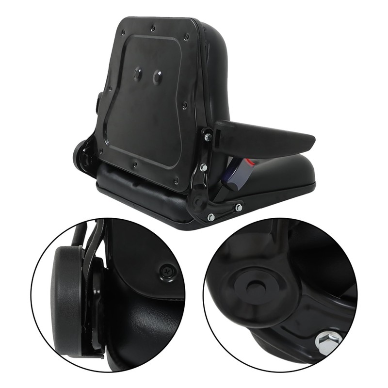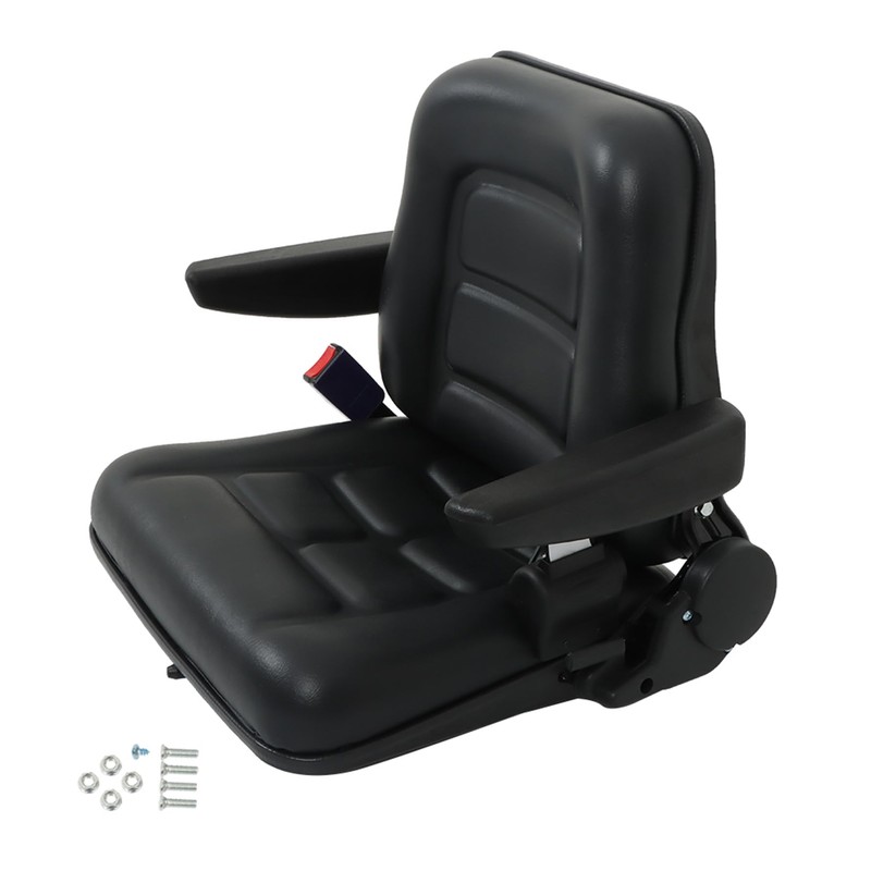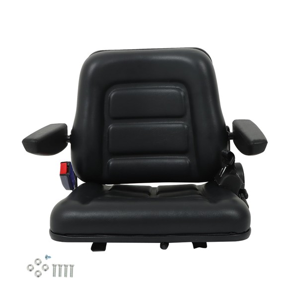 munirater Universal Fold Down Forklift Seat with Seatbelt Armrest and Slide Replacement for Excavator Skid Loader Backhoe Dozer Telehandler