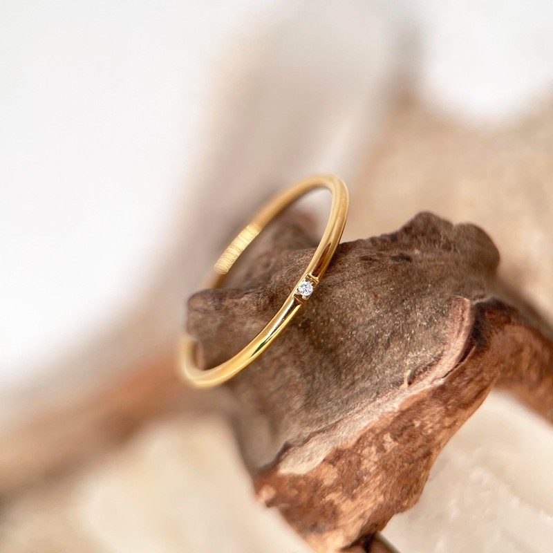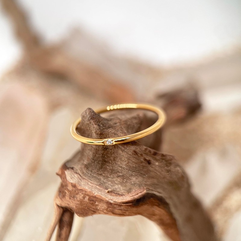 munone 1mm Skinny Thin Solitaire Flush Set Cubic Zirconia Stackable Band Ring for Women Men,14k Gold Plated Titanium Comfort Fit Band Rings