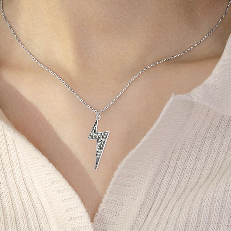 The core of this work is a clearly defined lightning pendant, symbolizing energy and boldness. Each edge is embedded with sparkling crystals that capture light from various angles, creating a dazzling visual effect. The background adds a touch of delicate warmth, balancing bold design with a touch of classic charm. This is not just a necklace, it is a wearable artwork that can converse with your inner trendsetter, bringing vitality to casual T-shirts or evening gowns at any time.