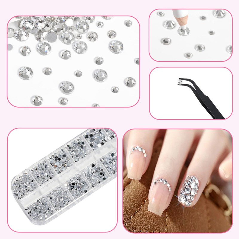 - Convenient to Use and Store: The wax-tipped rhinestone picker and tweezers make it easy to pick up and apply rhinestones accurately. The rhinestone box with 12 small compartments allows for individual storage to prevent mixing, making it convenient to classify and store different sizes and types of rhinestones.