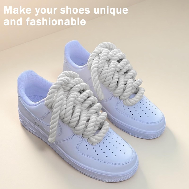 Whether you're rocking classic white sneakers or customizing statement shoes, these chunky rope laces for sneakers transform ordinary footwear into head-turning fashion pieces. Pair them with your favorite Air Force 1s for that coveted chunky-lace aesthetic, or use them as replacement strings for worn-out laces on other casual shoes.