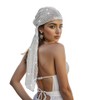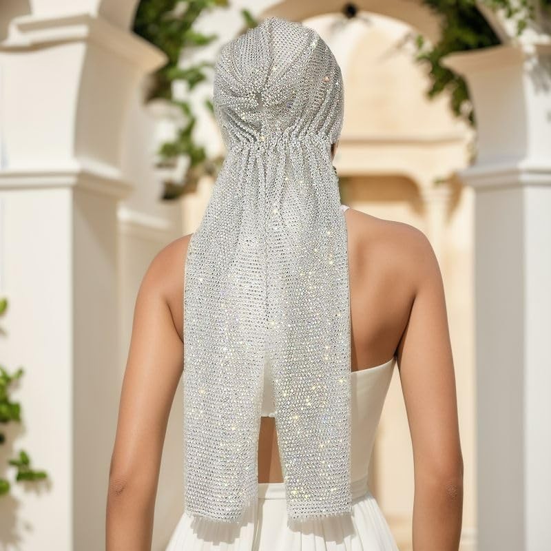Munyee Hua - Bufanda larga con diamantes de imitación para mujer, con diseño de SnoodHijab elástica, con malla de vidrio, turbante brillante, Blanco, Talla única