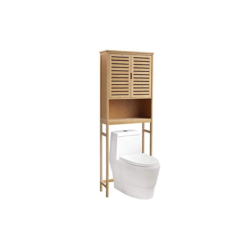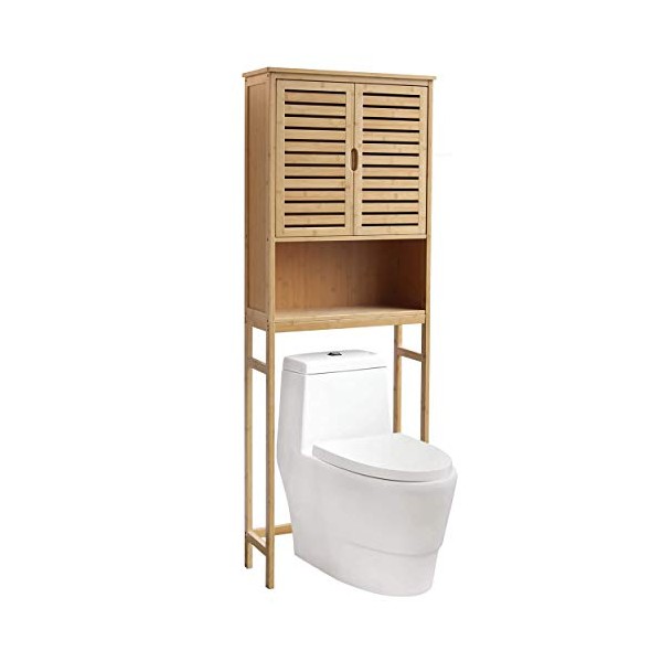 MUPATER Bamboo Over-The-Toilet Storage Cabinet Bathroom Organizer with Shelf and Cupboard, Freestanding Small Over The Toliet Cabinet, Space Save, Natural, 67''H x 24''W x 9''D
