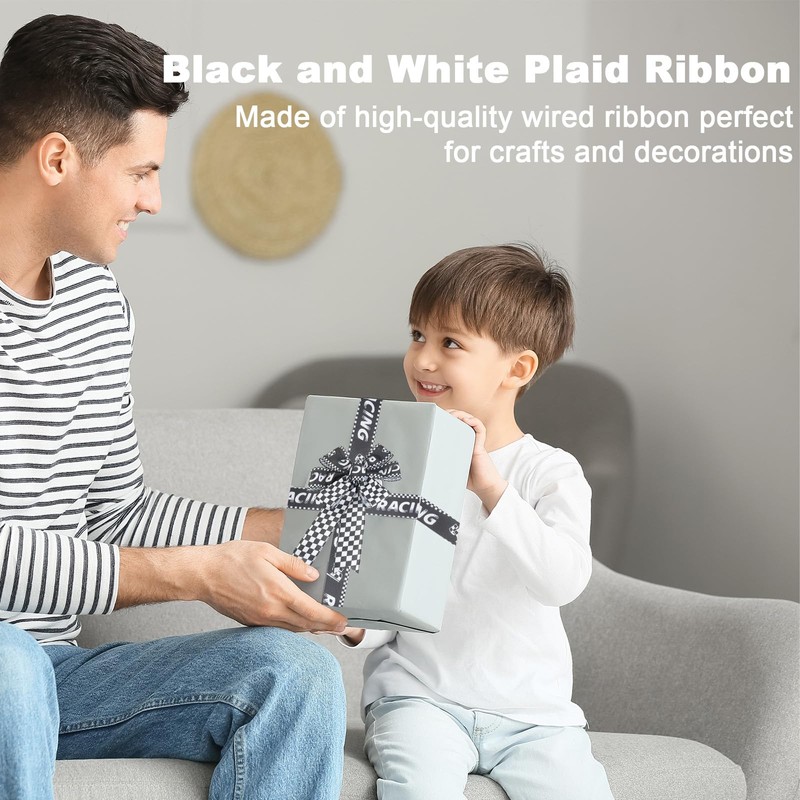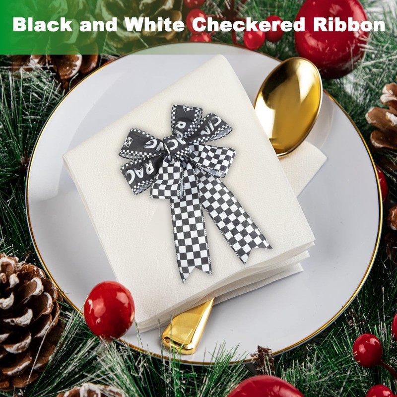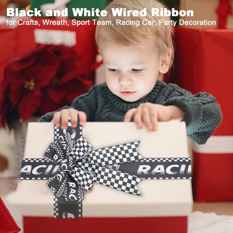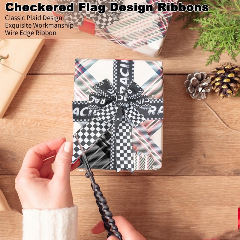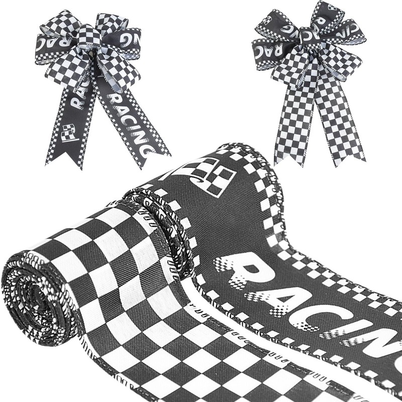 - What You Will Get: You will receive 2 rolls of Racing Car Theme Printed Ribbon, each roll Black White Checkered Printed Ribbon 2.5 inches/ 6.3 cm in width, and 5 yards in length, 10 yards in total, wired ribbon enough for you to apply.