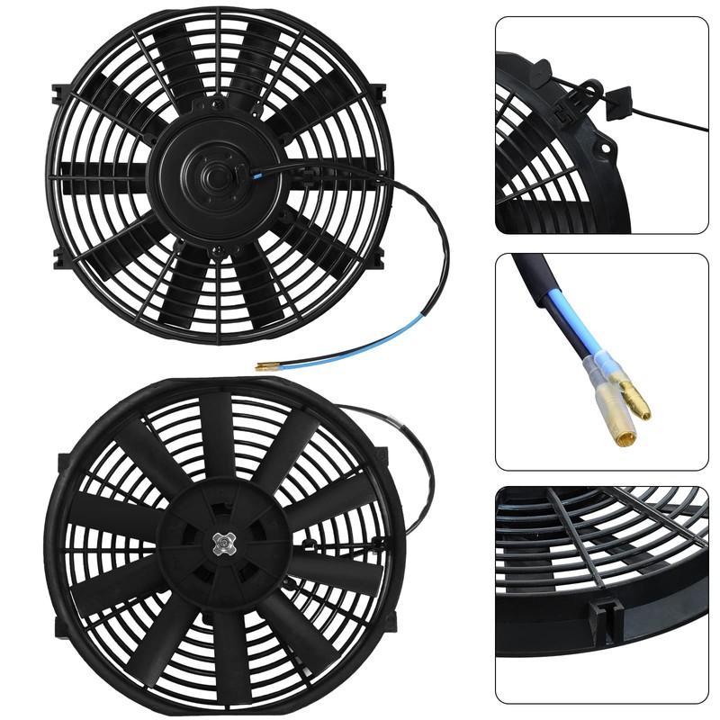 - WIDE USE - Universal radiator cooling fan fit various vehicles and engines,such as Truck/Van/Trailer/RV/Pickup etc. It depends on the size of your radiator. Auxiliary equipment for cooling the entire engine compartment, including radiators, air conditioning systems, intercoolers, oil systems, and transmissions.