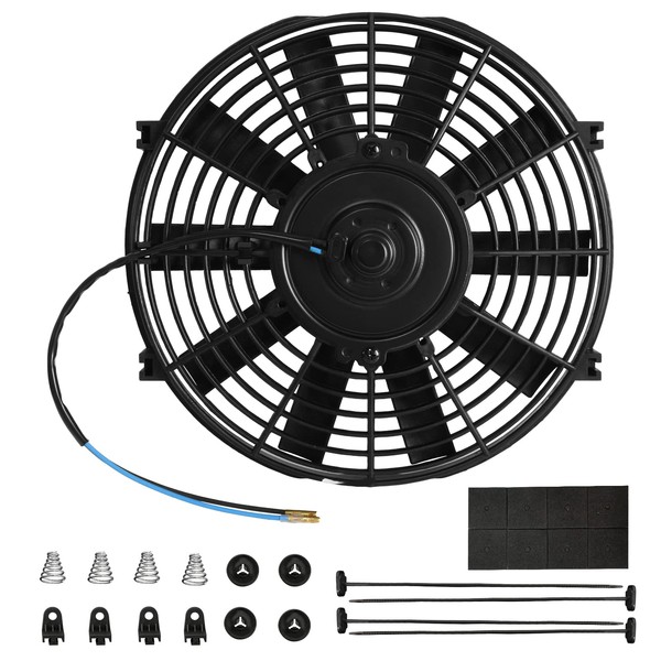 Mupera Electric Radiator Cooling Fan - Universal Slim Fan Push Pull, Electric Radiator Cooling Assembly 12V 80W with Mount Kit(10 inch, Black)