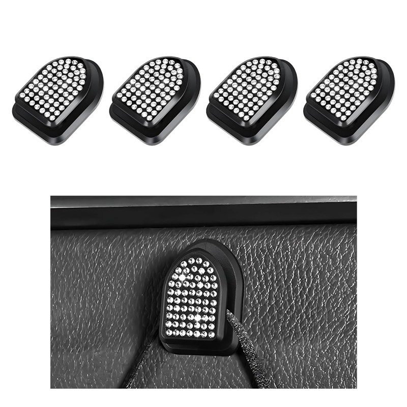 - Exquisite Decoration: The surface of these hooks is inlaid with diamonds, which can emit brilliant luster under the refraction of light. They enhance the delicacy of the car interior decoration while bringing a good mood. They can show your personality and taste while also making your best distinctive in details