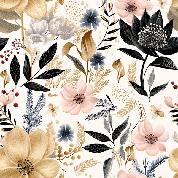 MuralPeel White/Pink/Gold Floral Garden Black Blue Flowers Vintage Peel and Stick Wallpaper Self Adhesive Removable Easy Peel Off Contact Paper Stick on Wall Paper for Bedroom Cabinet Renter Friendly