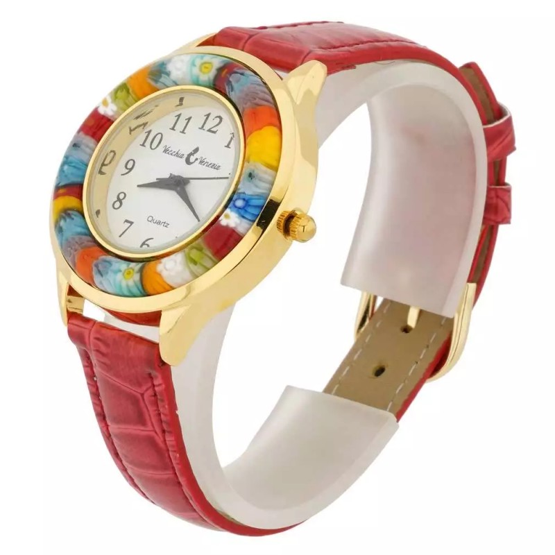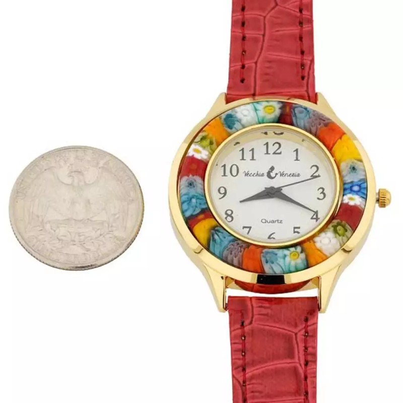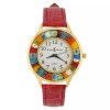 Serena Murano Millefiori Watch With Leather Band - Gold Red
