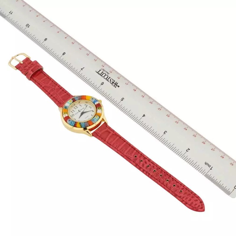 Murano GlassOfVenice Serena Murano Millefiori Watch With Leather Band - Gold Red