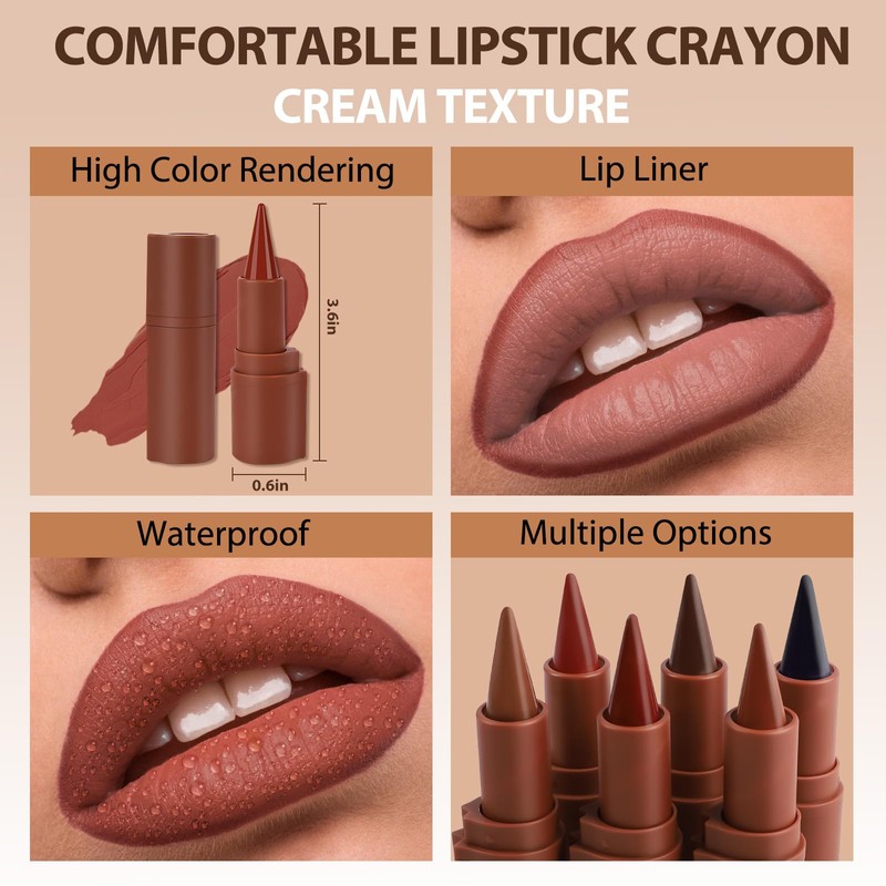 MUREND 2 in 1 Lip Liner Pencil and Lipstick Lip Combo Set, Matte Nude Black Dark Brown Red Lip Liner, Smooth Creamy Lip Pencil, High Pigmented Non-Smudging Waterproof Long Lasting Lip Makeup 02#