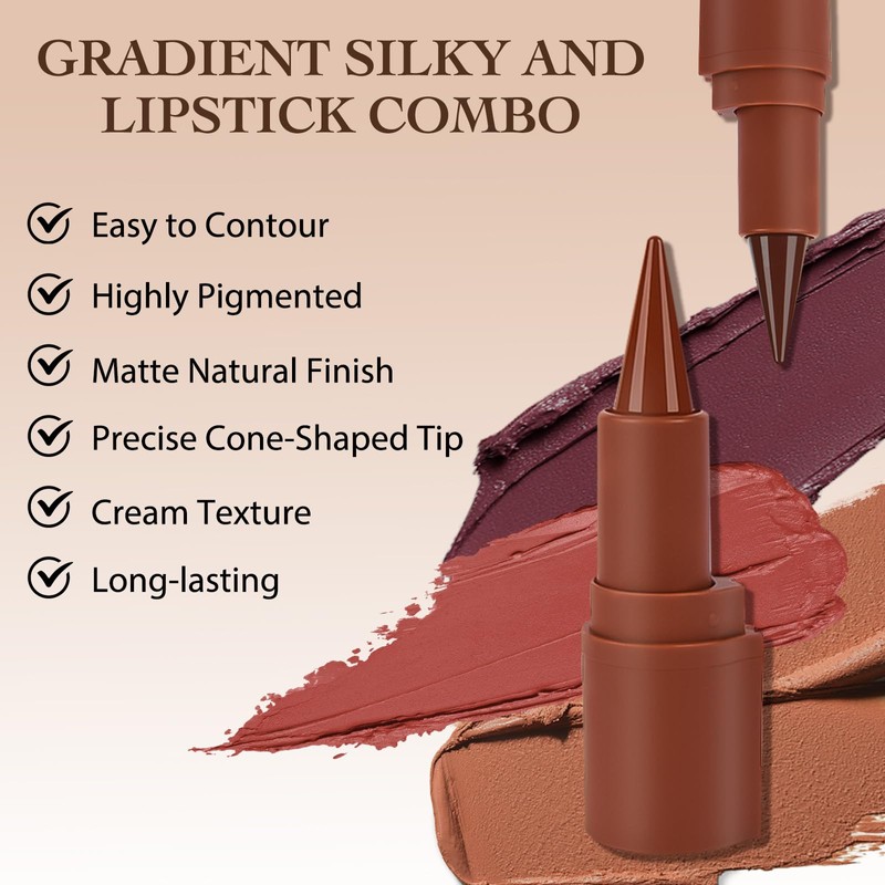 - 【Perfect Contour and Gradient Effect】The 2-in-1 lipstick and lip liner combination can quickly create a perfect lip contour. The tapered tip design can accurately apply the edges of the lips, creating a professional contour while applying the lips, quickly creating full and charming lips.