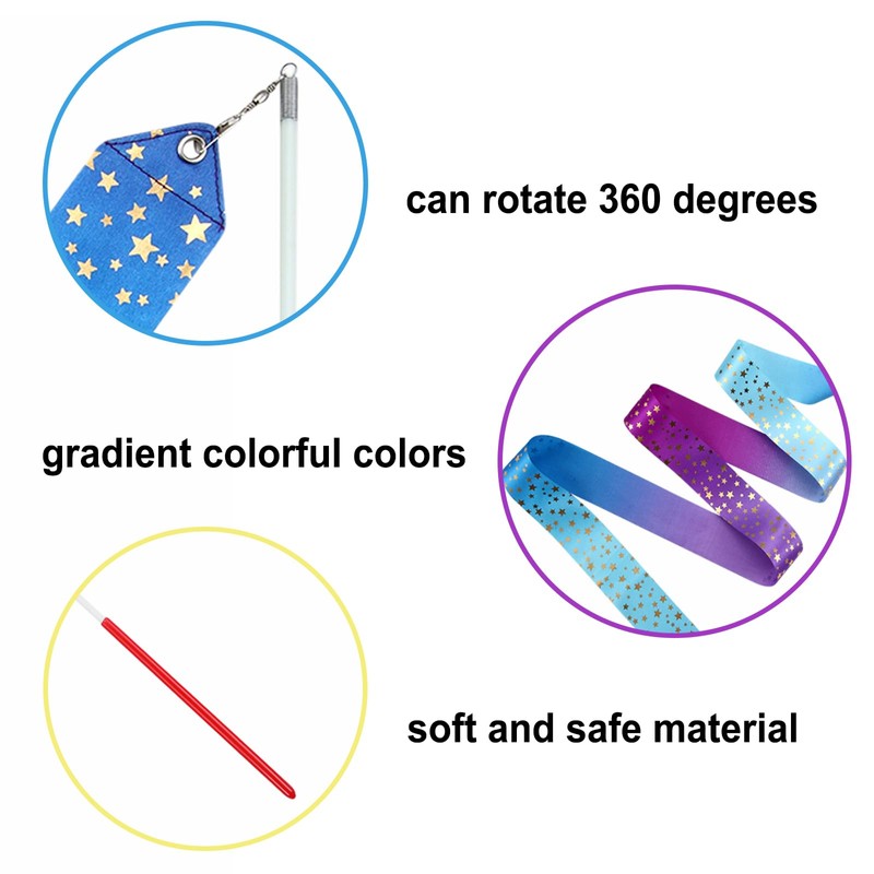 - UNIQUE PARTY GIFTS The star dance ribbon is made of blue and purple colors, while decorated with gold stars, represents the warmth and confidence in the path of freedom and dreams, while embodying purity, elegance and dignity. Favourite party supplies for children, star band to get children's hearts moving.
