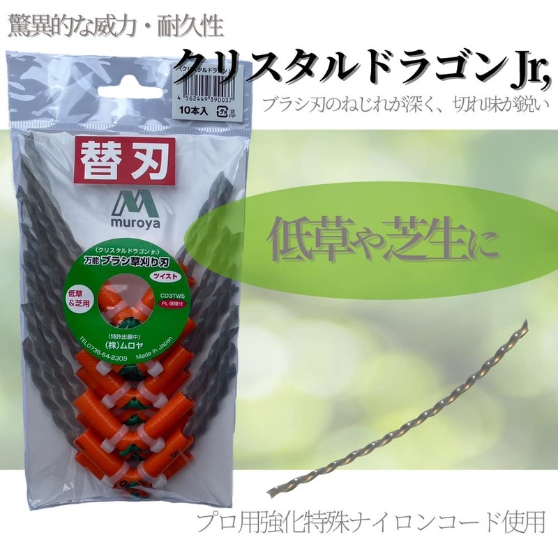 Muroya All-Purpose Brush Grass Cutting Blade, Maru-kun, Made with Professional Reinforced Special Nylon Cord (Exclusive Replacement Blades, 10 Pieces, Crystal Dragon Jr. Low Grass & Grass)