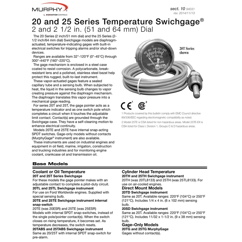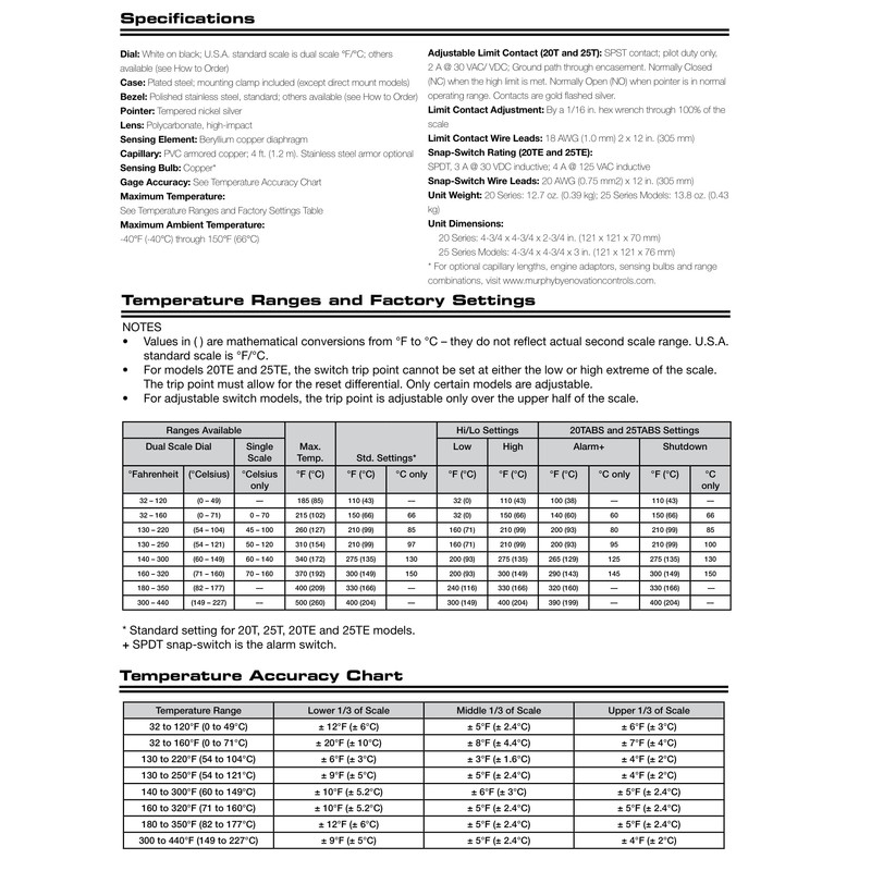 Murphy by Enovation Controls 20T-250-25-1/2 Temperature Swichgage (10702051)