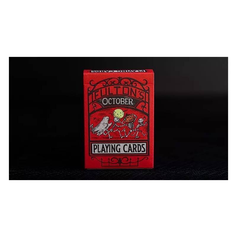 For the first time see the iconic October in a blood red rendering. These things pop! Embossed tuck box printed in China on exquisite cardistry playing card stock.