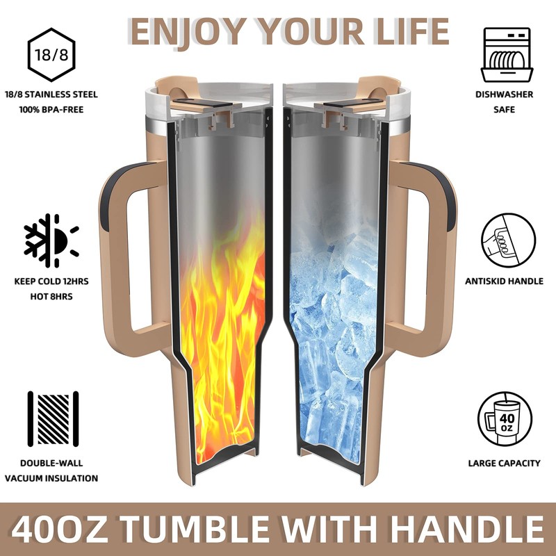 El vaso de viaje de 40 onzas te mantendrá hidratado todo el día. El vaso de aspiradora reutilizable de viaje de 40 onzas es el vaso que todo el mundo necesita en su despensa con una capacidad de 40 onzas y una cubierta giratoria de 3 vías. Puedes utilizar la abertura de boca ancha, la pajita reutilizable, o puedes cerrarla para evitar derrames.