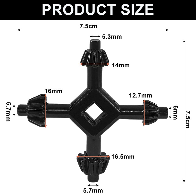 Murtenze 1 Pack 4 in 1 Drill Chuck Key Wrench, 4 Way Black Chuck Key for Home Repair Tools (S)