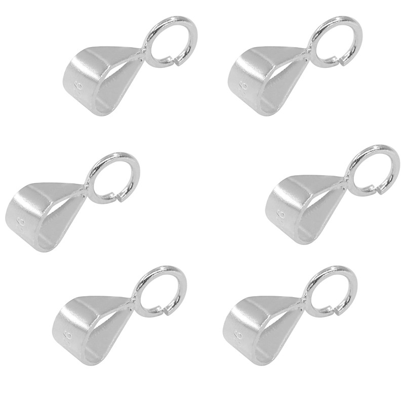 Murtenze 6 Pack Sterling Silver Slider Pendant Clasp, 925 Silver Connector Open Loop Bails, Made in Italy for Jewelry Making