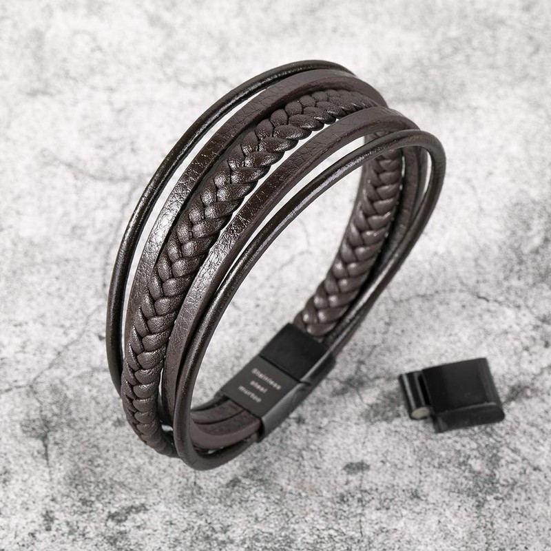 - Leather Bracelet - Multi-layer Genuine Leather Mixed the Braided Rope. The clasp is easy Put On Without Falling Off. SMART DESIGN:With an extra buckle, the bracelet can extend for another half a inch, makes it more fitting.