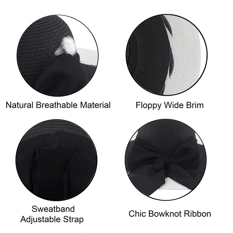 Muryobao Womens Sun Straw Hat Wide Brim UV UPF 50+ Summer Hat Foldable Roll up Floppy Beach Cap for Women Mix White Black
