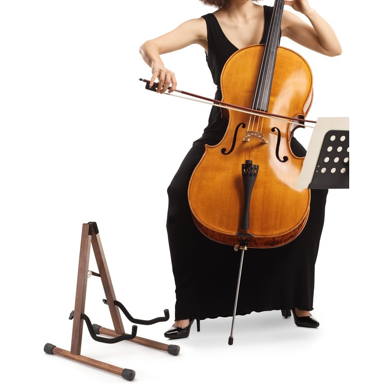 - Fits Cello Sizes from 1/8 to 4/4: The compact Musbeat cello stand provides ample space to accommodate most cello sizes, including 1/8, 1/4, 1/2, 3/4, 7/8, and full-size 4/4 cellos (Note: The height of the cello endpin is not included in this measurement). Whether you're a symphony orchestra member, an amateur, a beginner, or a young musician, this decor cello stand offers a great display and resting spot for cello players of all ages and skill levels. It’s worth mentioning, also fits guitar.