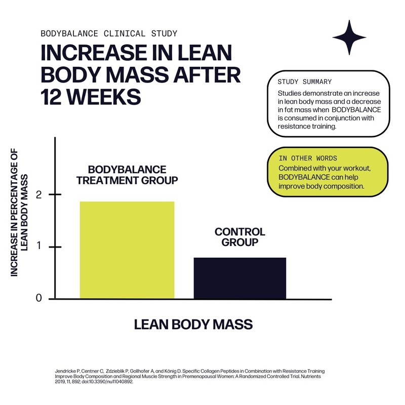 BODYBALANCE - a well studied collagen peptide, clinically proven to benefit muscle gain and fat reduction