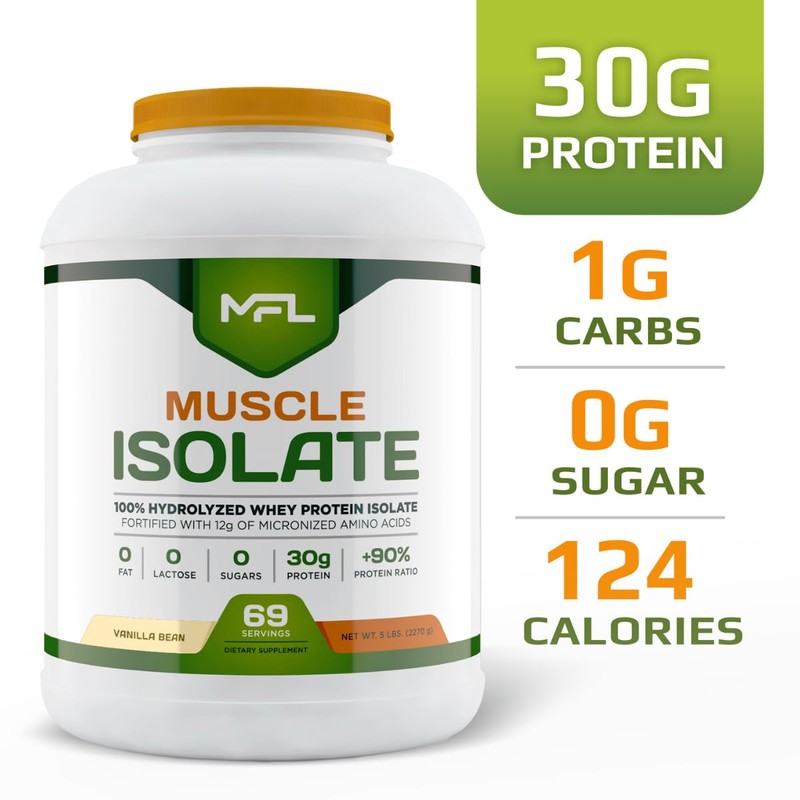 MUSCLE FOOD LABS MFL 100% Pure Isolate Protein 5 lbs l 30g of Protein l 12g Amino Acids l Keto Friendly l Low Carbs | 69 Servings (Vanilla Bean)