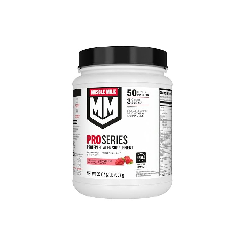 Muscle Milk Pro Series Protein Powder Supplement, Slammin' Strawberry, 2 Pound, 11 Servings, 50g Protein, 3g Sugar, 20 Vitamins & Minerals, NSF Certified for Sport, Packaging May Vary